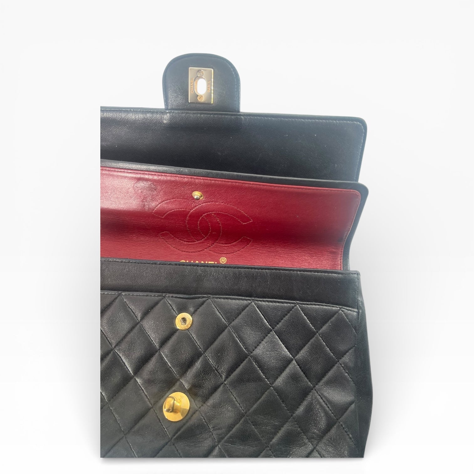 Diese Double Flap ist ein wahrer Vintage-Schatz, der durch seine Nutzung eine authentische Seele erhalten hat – perfekt für Kenner, die den gelebten Luxus eines Originals schätzen.