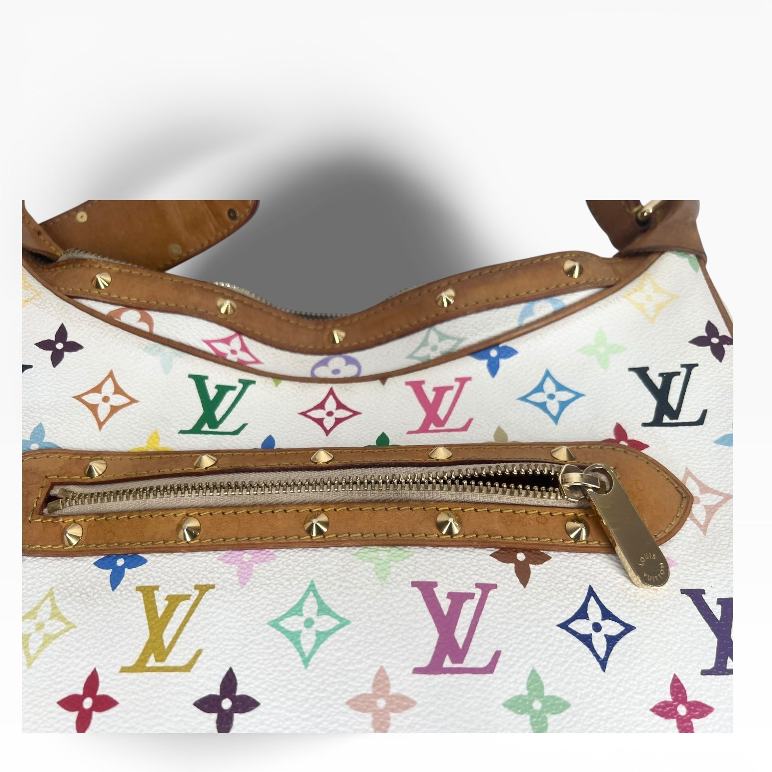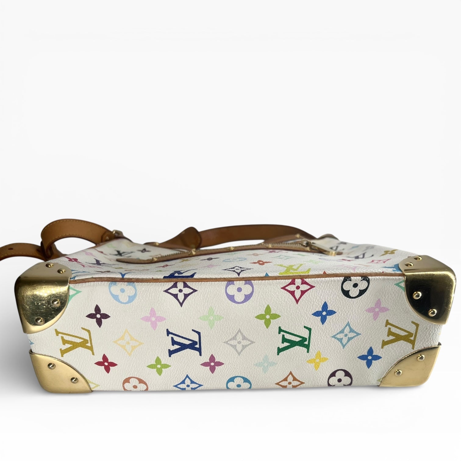 • Material: Weißes Monogram Multicolor Canvas mit naturbelassenem Rindsleder (Vachetta).