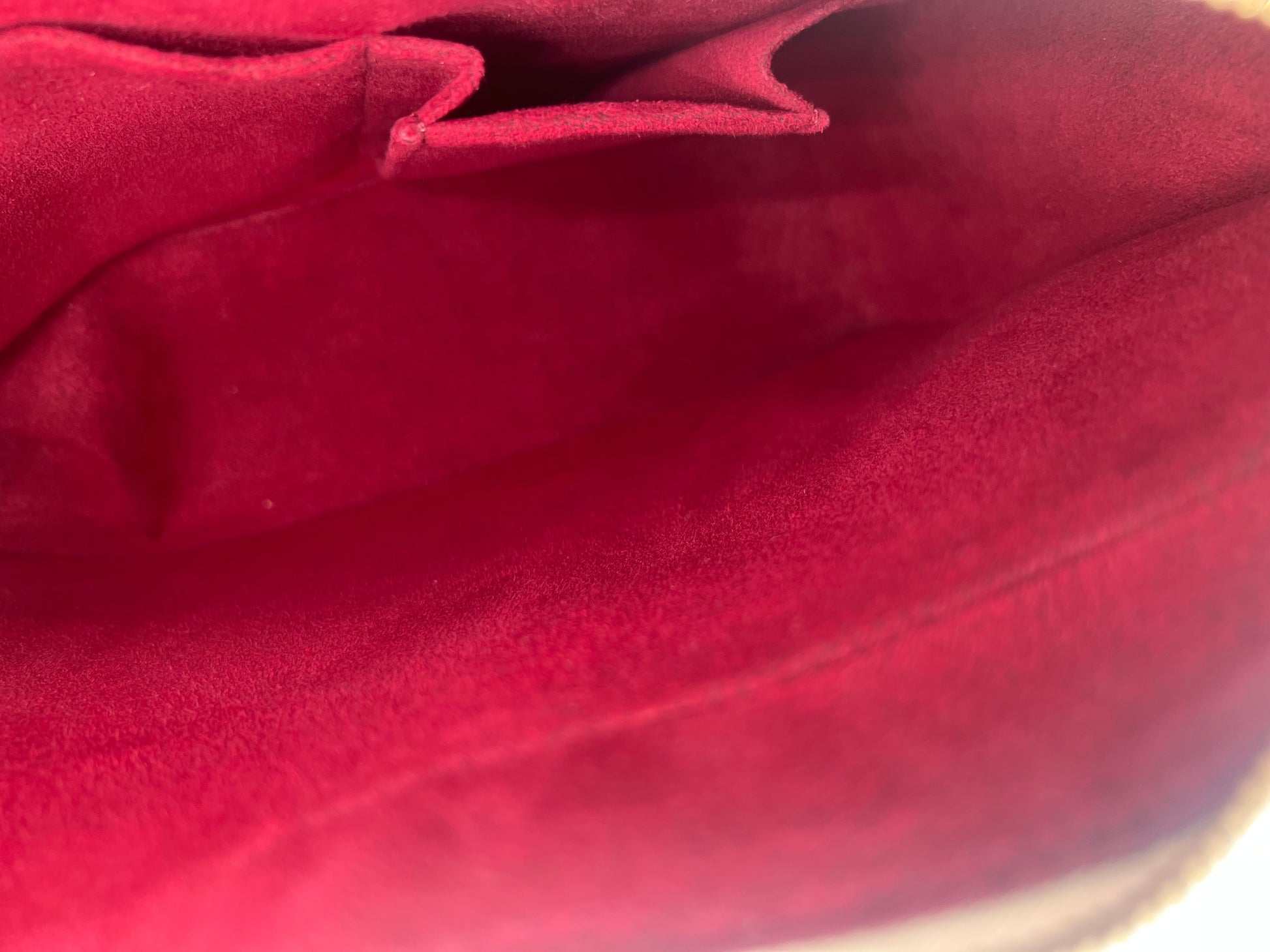 • Leder: Das Vachetta-Leder hat über die Jahre eine gleichmäßige, dunkle Patina entwickelt und zeigt die für das Alter typischen Gebrauchsspuren.